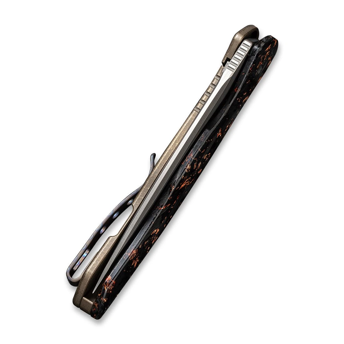 Handle Material: Presentation Side: Shredded Carbon Fiber And Copper Shred In Clear Resin